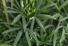 矮棕竹:丛生灌木,高1米或更高些,茎圆柱形,有节,上部被紧密的网状纤维的叶鞘,纤维毛发状,淡褐色。叶掌状深裂,裂片7-20片,线形,具1-2条肋脉,叶柄约与叶片等长,较细,两面凸起,边缘平滑。花雌雄…全部>>