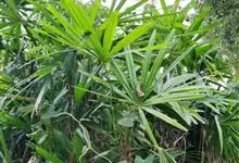 细叶棕竹,灌木,茎细如竹,多数聚生,有网状叶鞘。叶半圆形,掌状深裂,裂片狭长,阔线形,软垂,裂片7-20枚,叶柄无刺。全部>>