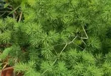 蓬莱松是天门冬科、天门冬属多年生丛生草本植物。宿存,圆柱形肉质根,纵截面为绿色和表面灰色。植株高可达3米。茎呈圆柱形或近四边形,底部木质化,具有灰色或灰褐色。幼嫩的茎在每个节上都被紫绿色鳞片包,…全部>>