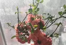 贴梗海棠Nakai)是蔷薇科、木瓜海棠属植物。落叶灌木,高达2米,枝条直立开展,有刺。叶片卵形至椭圆形,稀长椭圆形,长3-9厘米,宽1.5-5厘米。花先叶开放,3-5朵簇生于二年生老枝上。…全部>>