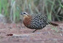 红腹角雉属于鸡形目雉科,雄鸟体羽及两翅主要为深栗红色,满布具黑缘的灰色眼状斑,下体灰斑大而色浅。雌鸟上体灰褐色,下体淡黄色,杂以黑、棕、白斑。全部>>
