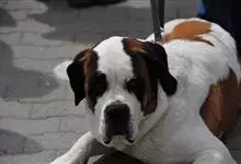 圣伯纳犬,别名巴里汉德,属于大型工作犬,肩高约65~90厘米,体重约50~90千克。圣伯纳犬身体强壮,被毛红褐色和白色相间,头圆而宽大。颈部强壮,胸宽深,背直。前肢长直,腕关节略前倾,后肢腿骨粗壮,…全部>>