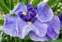 花菖蒲:是玉蝉花的变种。多年生宿根挺水型水生花卉。根状茎短而粗,须根多并有纤维状枯叶梢,叶基生,线形,叶中脉凸起,两侧脉较平整。花葶直立并伴有退化叶1-3枚。花大直径可达15厘米。外轮三片花瓣呈椭圆…全部>>