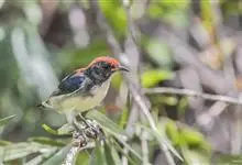 朱背啄花鸟:体重6-8克,体长81-97毫米。是一种小型的黑色及红色啄花鸟。雄鸟顶冠、背及腰猩红色,两翼、头侧及尾黑,两胁灰,下体余部白色。雌鸟上体橄榄色,腰及尾上覆羽猩红,尾黑。亚成鸟清灰色,嘴橘黄,…全部>>