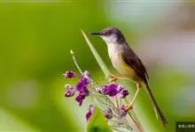 黄腹鹪莺:体长13厘米,是一种体型略大而尾长的橄榄绿色鹪莺。喉及胸白色,以下胸及腹部黄色为其特征。头灰,有时具浅淡近白的短眉纹;上体橄榄绿色;腿部皮黄或棕色。换羽导致羽色有异。繁殖期尾较短,…全部>>
