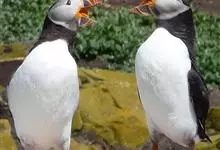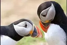 角海鹦:是鸻形目海雀科的鸟类,体重581-648克,体长约32厘米,翼展18-20厘米。是一种身体结实的鸟类,蹼脚、翅膀短,擅长游泳捕鱼,而在陆地上行走时则显得僵硬、步履蹒跚。有一张大嘴巴,呈三角形…全部>>