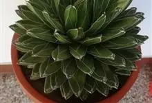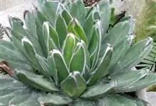 皇后龙舌兰是天门冬科、龙舌兰属多年生草本多浆植物。无主茎,叶丛生,莲座状,株幅40厘米。叶较多,先端较细,三棱形,腹面扁平,背面圆形呈微龙骨凸起,长10-30厘米,宽2.5-7.5厘米,厚肉质硬,…全部>>