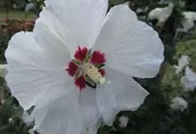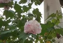 木芙蓉,锦葵科木槿属落叶灌木或小乔木。小枝上有细绒毛;叶片为卵状心形,托叶为披针形,常早落;花单生,花萼为钟形,花冠初为白色或淡红色,后逐渐变为深红色;果实为扁球形,有淡黄色的毛附着。花期8到10月。…全部>>