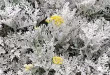 银叶菊,是菊科疆千里光属多年生草本植物。银叶菊的茎灰白色,植株多分枝;叶回羽状裂,正反面均被银白色柔毛;头状花序集成伞房花序,舌状花小,金黄色,管状花褐黄色;花期为6-9月。银叶菊原产于地中海沿岸地区,…全部>>