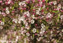 湖北海棠 Rehder)是蔷薇科苹果属植物,乔木,高达8米;小枝最初有短柔毛,不久脱落,老枝紫色至紫褐色;冬芽卵形,先端急尖,鳞片边缘有疏生短柔毛,暗紫色。果实椭圆形或近球形,直径约1厘米,…全部>>
