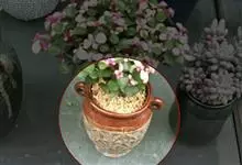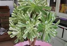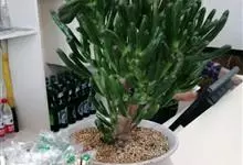 筒叶花月,是景天科青锁龙属的多年生草本植物。植株多分株,灌木状,茎较粗壮,圆柱形,表皮灰褐色;叶片肉质,互生,呈圆筒状,簇生于茎或分枝顶端,叶端呈斜截形,截面为椭圆形;花呈星状,淡白色;花期秋季。…全部>>