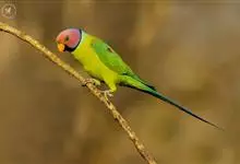 紫红头鹦鹉是鹦形目鹦鹉科的鸟类。鸟体为绿色,头部中间为红色,下颏下方延伸到脸颊下方,环绕整个颈部有一条黑色的环状羽毛,并连接一条蓝绿色的条状羽毛。…全部>>