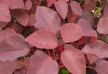 紫锦木是大戟科、大戟属的常绿乔木。叶圆卵形,主脉于两面明显,侧脉数对,边缘全缘,两面红色;花序生于二歧分枝的顶端,总苞阔钟状,裂片呈三角形,边缘具毛,腺体深绿色呈半圆形,…全部>>