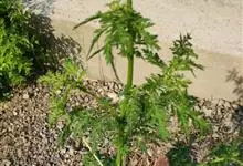 大籽蒿是菊科,蒿属一、二年生草本植物。主根垂直,狭纺锤形。茎单生,直立,高可达150厘米,分枝多;茎、枝被灰白色微柔毛。下部与中部叶片宽卵形或宽卵圆形,两面被微柔毛,裂片常再成不规则的羽状全裂或深裂,…全部>>
