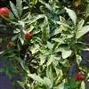 冬珊瑚,现名珊瑚豆 Bitter)。直立小灌木,多分枝成丛生状,作1-2年生栽培。株高30-60厘米。叶互生,狭长圆形至倒披针形。夏秋开花,花小,白色,腋生。浆果,深橙红色,圆球形,直径1-1.5厘…全部>>