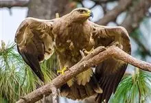 金雕:属于鹰科、雕属的猛禽。体长76-102厘米,翼展达2.3米,体重2-6.5千克。雌雄同色。未成年时,头、颈黄棕色;两翼飞羽除了最外侧三枚外基部均缀有白色,其余身体部分暗褐色;羽尾灰白色,…全部>>