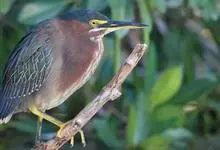 绿鹭:是鹳形目鹭科绿鹭属鸟类。体型小,头顶黑,枕冠亦黑色,上体蝉灰绿色,下体两侧银灰色;前额至后枕及冠羽墨绿色,眼后有一白斑,颊纹黑色;颚纹白色,后颈、颈侧和体侧烟灰色;背部披灰绿色矛状长羽,…全部>>