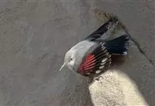 红翅旋壁雀:体重15-23克,体长120-178毫米。是一种体型略小的鸟类。尾短而嘴长,翼具醒目的绯红色斑纹。飞羽黑色,外侧尾羽羽端白色显著,初级飞羽两排白色点斑飞行时成带状。繁殖期雄鸟脸及喉黑色,…全部>>