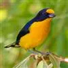 燕雀属小型鸟类,体长14-17厘米。嘴粗壮而尖,呈圆锥状。雄鸟从头至背辉黑色,背具黄褐色羽缘。腰白色,颏、喉、胸橙黄色,腹至尾下覆羽白色,两胁淡棕色而具黑色斑点。两翅和尾黑色,翅上具白斑。…全部>>