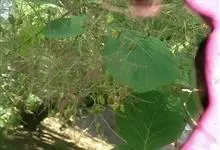粉背黄栌叶卵圆形,较大,长3.5-10厘米,宽2.5-7.5厘米,无毛,但叶背显著被白粉;叶柄较长,1.5-3.3厘米,…全部>>