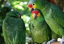 黄颈亚马逊鹦鹉是鹦形目鹦鹉科鸟类。体长38厘米,对趾型足,两趾向前两趾向后,羽色鲜艳,外表帅气;羽毛大部分是绿色;眼睛虹膜为橘色;头冠、眼喙之间和大腿处分布有黄色;在翅膀的转折处有少许红色点缀,…全部>>