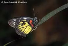 报喜斑粉蝶是粉蝶科斑粉蝶属的一种动物,又名红肩粉蝶、藤粉蝶等。幼虫群集性很强,从同一卵块孵化出的幼虫,幼龄期全部群集在一起取食,高龄幼虫常分散成小群。幼虫群集危害叶片,造成秃枝,严重者可将树吃成光杆,…全部>>