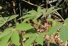 木薯,为大戟科木薯属的一种直立灌木,又名木番薯、树薯。木薯高1.5-3米;块根圆柱状。叶纸质,轮廓近圆形;裂片倒披针形至狭椭圆形;托叶三角状披针形。圆锥花序顶生或腋生,花萼带紫红色且有白粉霜。…全部>>