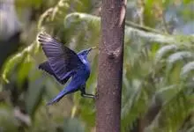 蓝大翅鸲是鹟科、大翅鸲属小型鸟类,体长19-21厘米。两翅尖长。雄鸟通体鲜紫蓝色具金属光泽。两翅和尾黑色。雌鸟上体灰褐色,头、颈、翕具棕白色纵纹,翅上有白色翅斑。虹膜暗褐色,嘴、脚黑色。…全部>>