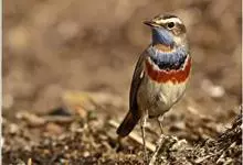 蓝点颏亦称“蓝喉歌鸲”,通称蓝靛颏儿。身体大小和麻雀相似,体长12-13厘米,体重17-18克。头部、上体主要为土褐色。眉纹白色。尾羽黑褐色,基部栗红色。颏部、喉部辉蓝色,下面有黑色横纹。下体白色。…全部>>