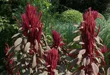 千穗谷一年生草本;茎绿色或紫红色,分枝,无毛或上部微有柔毛。叶片菱状卵形或矩圆状披针形,具凸尖,基部楔形,无毛,上面常带紫色;叶柄无毛。圆锥花序顶生,直立,圆柱形,不分枝或分枝,由多数穗状花序形成,…全部>>