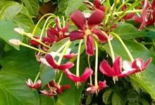 使君子 Jongkind)是使君子科、使君子属攀援灌木,叶对生,椭圆形,两面均被灰白色柔毛。穗状花序,倒挂下垂。花期夏秋。果有五棱,熟时黑色,种子白色。分布于印度、缅甸、菲律宾和中国。喜温润,深根性,…全部>>