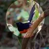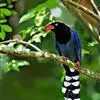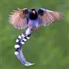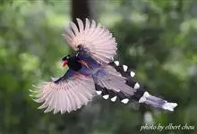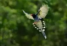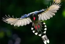 台湾蓝鹊:体长64至65厘米,翼展18至21厘米,尾长约40厘米,尾羽长占了总体长的三分之二。头、脸、颈、喉、胸都是黑色,黄色的眼珠包围黑色的瞳孔,鲜红色的鸟喙、双脚,…全部>>