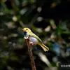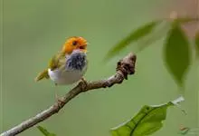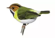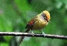棕脸鹟莺:体长10厘米,是一种色彩亮丽而有特色的莺鸟。头栗色,具黑色侧冠纹。上体绿,腰黄色。下体白,颏及喉杂黑色点斑,上胸沾黄。与栗头鹟莺的区别在头侧栗色,白色眼圈不显著且无翼斑。…全部>>