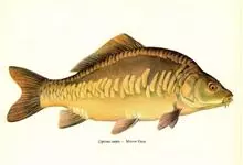 镜鲤是鲤形目鲤科鲤属鱼类。体形较粗壮,侧扁,头后背部隆起;头较小,眼较大;有颌须2对;鳃耙短小,呈三角形适中排列;尾鳍叉形;体表鳞片较大,沿边缘排列,背鳍前端至头部有一行完整的鳞片,…全部>>