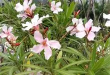 夹竹桃,又名红花夹竹桃、欧洲夹竹桃,是夹竹桃科夹竹桃属的一种常绿直立大灌木,枝条灰绿色,含水液。叶披针形,3叶轮生。聚伞花序顶生,花冠粉红至深红色,花冠漏斗状,有特殊香味。蓇葖果,圆柱形。种子长圆形,…全部>>