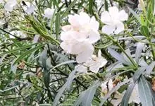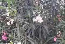 白花夹竹桃是夹竹桃科、夹竹桃属植物夹竹桃的栽培品种。常绿直立大灌木,枝条灰绿色;嫩枝条具稜,被微毛,老时毛脱落。叶3-4枚轮生,下枝为对生,叶面深绿,叶背浅绿色;侧脉纤细平行与中脉成直角;叶柄扁平,…全部>>