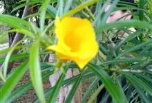 黄花夹竹桃K. Schum.),又名“酒杯花”“柳木子”“黄花状元竹”,是夹竹桃科,黄花夹竹桃属下的常绿乔木植物。高达5m,全株无毛,树皮棕褐色;叶互生,近革质,线形或线状披针形;花大,黄色,具香味,…全部>>