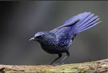 紫啸鸫是雀形目鹟科啸鸫属鸟类,又称黑雀儿,山鸣鸡、乌精。成鸟眼先及颏绒黑色;前额、头顶至背及肩羽和颈侧呈深紫蓝色,羽端具较密集的亮蓝色点斑;腰至尾上覆羽的深紫蓝色较暗而杂黑褐色,…全部>>