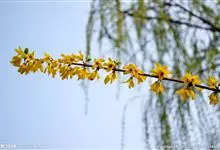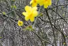 迎春花,木犀科素馨属的多年生木本植物,小枝细长直立或者呈拱形下垂;叶片呈卵形或椭圆形;花单生于叶腋处,苞片呈披针形或椭圆形,花冠为金黄色,花瓣通常为倒卵形或椭圆形;花期在6月。…全部>>