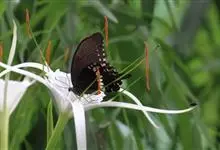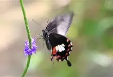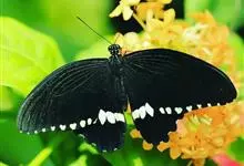 玉斑凤蝶Papilio helenus 别名白纹凤蝶,是凤蝶科凤蝶属美凤蝶亚属大型种类。雌雄同型;体翅皆黑色,后翅正面中室外有3个并列的白色斑,亚外缘有1列模糊的新月形红色斑,…全部>>