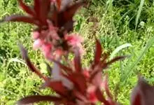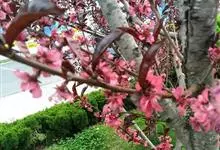 紫叶桃花是李亚科,桃属植物桃的变种,叶为窄椭圆形至披针形,长15厘米,宽4厘米,先端成长而细的尖端,边缘有细齿,暗绿色有光泽,叶基具有蜜腺;树皮暗灰色,随年龄增长出现裂缝;花单生,从淡至深粉红或红色,…全部>>