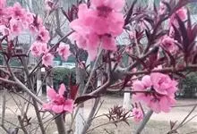 红叶碧桃是蔷薇科、桃属植物。红叶碧桃是碧桃的一个变异品种。落叶小乔木。株高3~5米,树皮灰褐色,小枝红褐色。单叶互生,卵圆状披针形.幼叶鲜红色。花重瓣、桃红色,分为长花枝、中花枝和短花枝及花束状枝,…全部>>