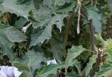 毛曼陀罗是茄科曼陀罗属一年生直立草本或半灌木状植物。株高1-2米,全体密被细腺毛和短柔毛。茎下部灰白色,分枝灰绿色或微带紫色;叶片广卵形,基部不对称近圆形,…全部>>