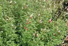 樱桃鼠尾草唇形科鼠尾草属多年生草本植物,原产于美国德州至墨西哥,单叶对生,披针形、椭圆形或卵形,锯齿叶缘,总状花序,花萼合生,钟状,二唇形,宿存,花冠唇形,有桃红、深红、粉红、杏黄、白色等。…全部>>