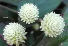 锦绣苋 G. Nicholson),是苋科莲子草属草本植物。头状花序顶生及腋生,苞片及小苞片卵状披针形,花被片卵状矩圆形,白色;果实不发育;叶片矩圆形、矩圆倒卵形或匙形,呈绿色或红色,或部分绿色,…全部>>