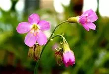 红花酢浆草别名铜锤草、大酸味草、幸运草等,是酢浆草科酢浆草属的多年生直立草本植物。其无地上茎,地下部有球状鳞茎;叶基生,叶柄长5~30cm或更长,被毛;花瓣5,倒心形,淡紫色至紫红色,基部颜色较深。…全部>>