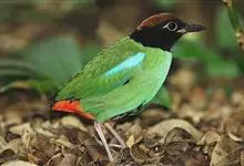 栗头八色鸫又叫锅巴雀,体长为24-26厘米,体重100-135克,是雀形目八色鸫科的鸟类。体型圆胖,尾短,腿长,常在森林底层或低植被中找食无脊椎动物。叫声简单哀婉。…全部>>