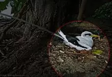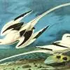 白尾鹲:体重220-410克;体长370-400毫米,加上延长的尾羽为680-990毫米,是一种中型热带海鸟。全身羽毛主要为白色,繁殖期微缀有橙色。眼前和眼后有粗著的黑色斑,像两条粗黑的眼眉。…全部>>
