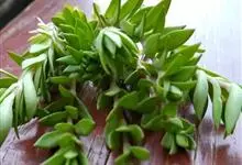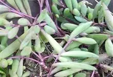 紫玄月是菊科厚敦菊属多年生肉质草本植物。蔓长30-60厘米;茎紫色;叶对生或互生茎上肉质,叶片细圆柱形,中间粗两端细稍弯曲;花序着生于叶腋,头状花序,舌状花黄色,管状花黄色;花期全年。…全部>>