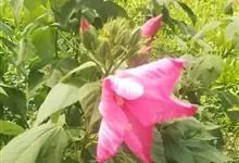 芙蓉葵是锦葵科木槿属植物,又名草芙蓉、大花秋葵,原产于北美。落叶灌木状。叶大、广卵形,叶柄、叶背密生灰色星状毛。花大,单生于叶腋,有白、粉、红、紫等色。喜阳、略耐阴,宜温暖湿润气候,忌干旱,耐水湿,…全部>>